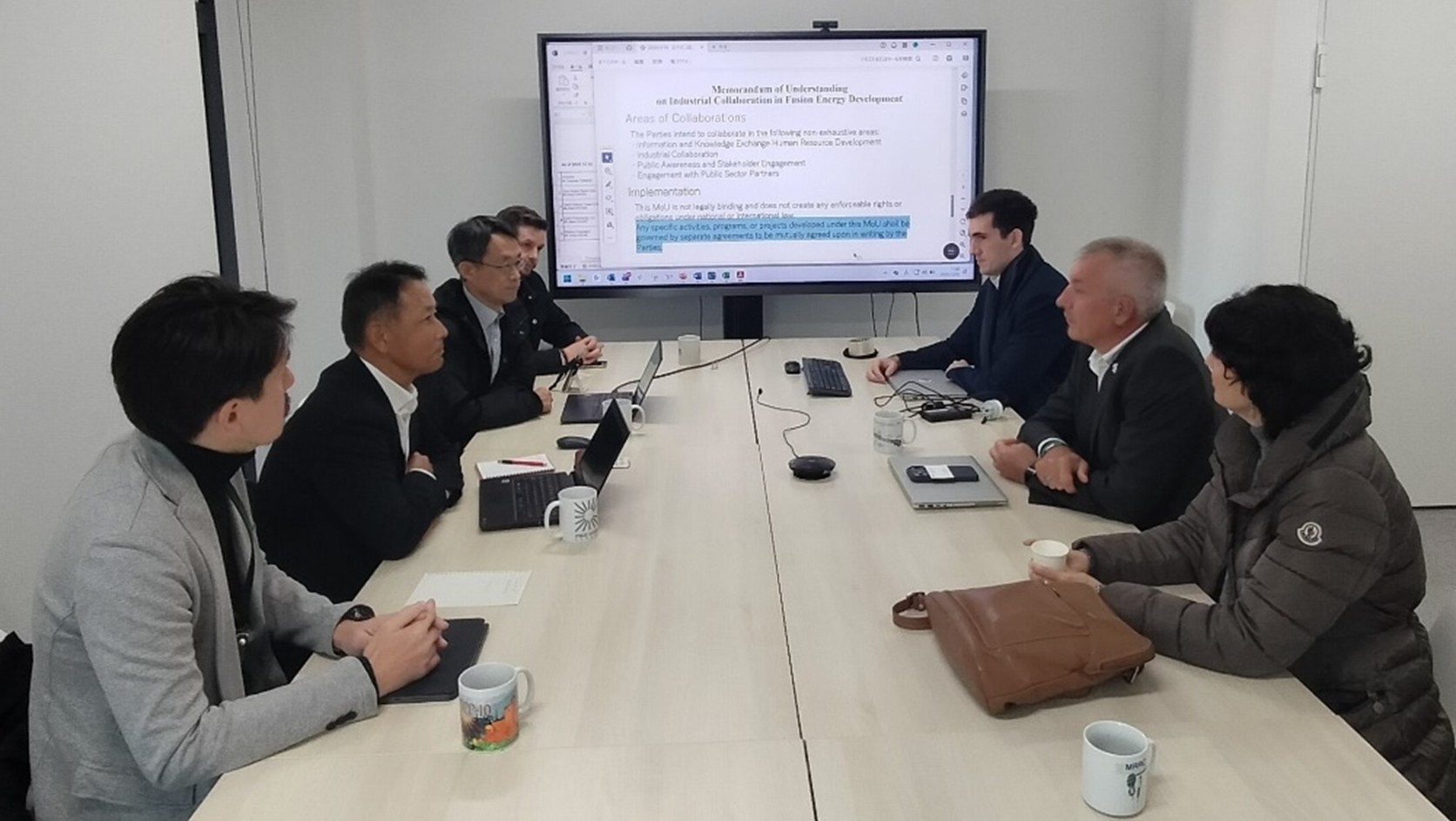 本覚書は、フュージョンエネルギー開発に関する情報・知見の交流、人材開発、サプライチェーンなどの分野で双方の協力を促進することを取り交わしたものであり、署名後、INEUSTARエリック・フェルナンデス事務局長等と今後の具体的な協力の方向性について意見交換をしました。