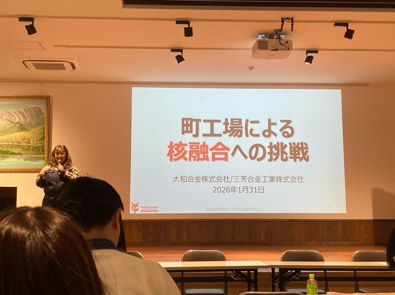 大和合金株式会社 三芳工場を訪問しました。冒頭では、同社がこれまでフュージョンエネルギー業界にどのように貢献してきたかについての説明が行われ、その後、工場見学を行いました。
